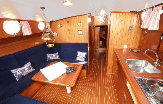 Tagesraum, Küche mit Kühlschrank, Trinkwasser, Warmwasserboiler, Heizung, Kompass, Hand GPS, Radsteuerung, Landstrom 220 V, Radion, CD Player